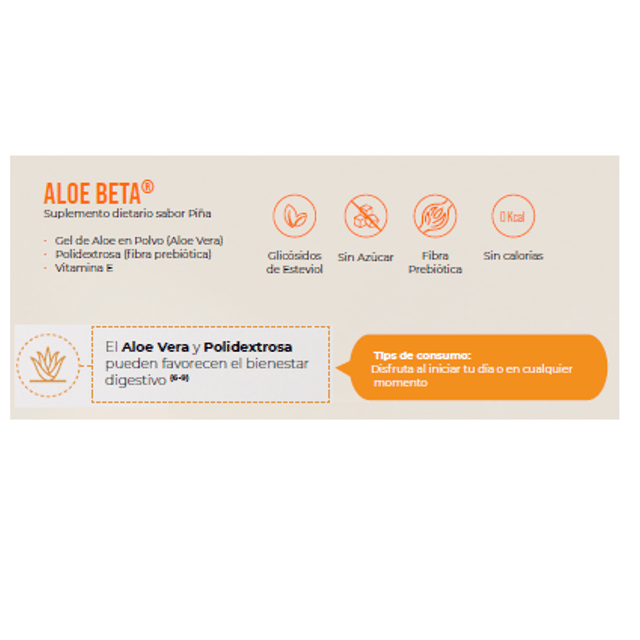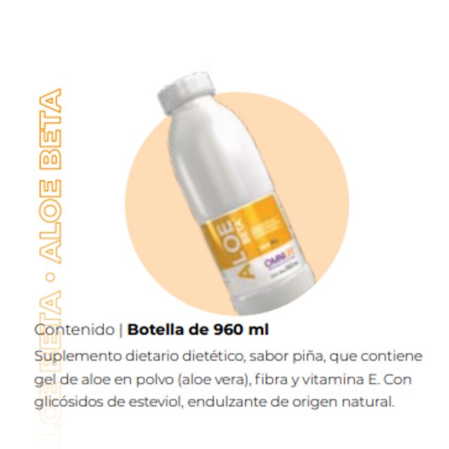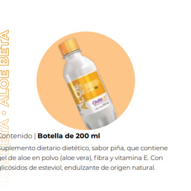 Contenido | Botella de 200 ml Suplemento dietario sabor piña a base de fibra el Aloe Vera, Polidextrosa, vitamina E