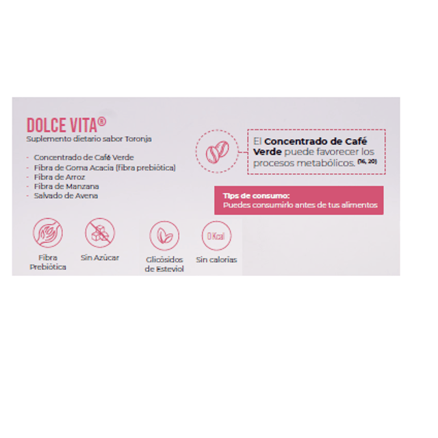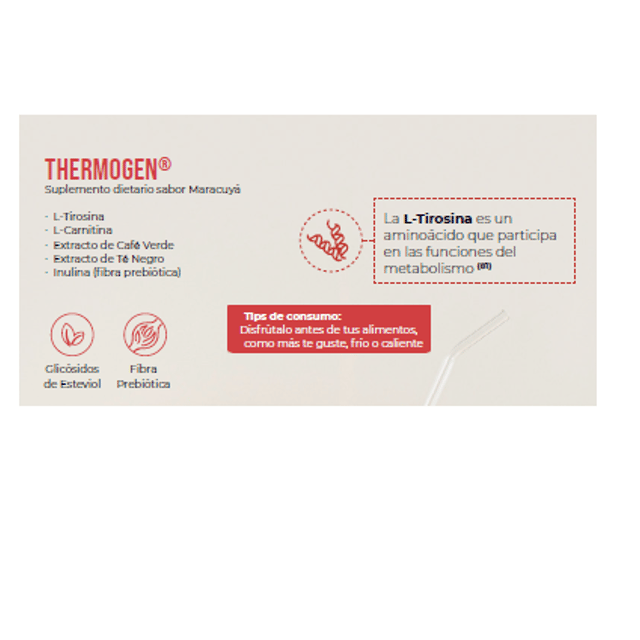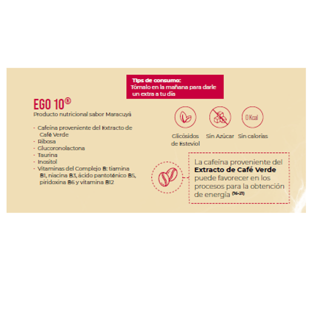 Caja c/30 sachets 7.5g Producto nutricional sabor maracuyá con extracto de café verde, L-tirosina, L-carnitina y fibra, que promueve la saciedad, favorece la nutrición y cuidado saludable del peso.