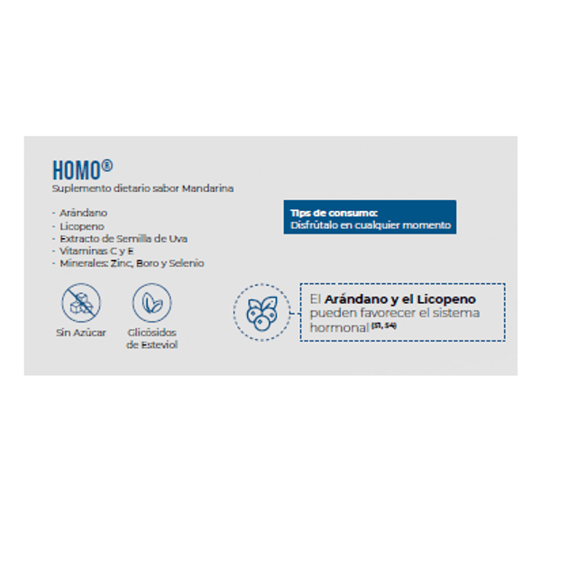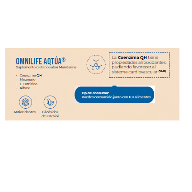 Caja c/30 sachets de 5 g Producto nutricional sabor mandarina, con coenzima ubiquinol, L-carnitina, magnesio y D-ribosa, que favorece al funcionamiento y la nutrición cardiovascular.