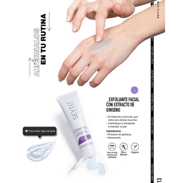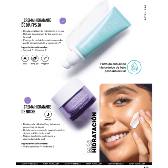 Crema de uso nocturno, formulada para mejorar los niveles de hidratación y vitalidad en la piel, actuando en el momento en que la piel es más receptiva y su capacidad de auto reparación es más óptima.